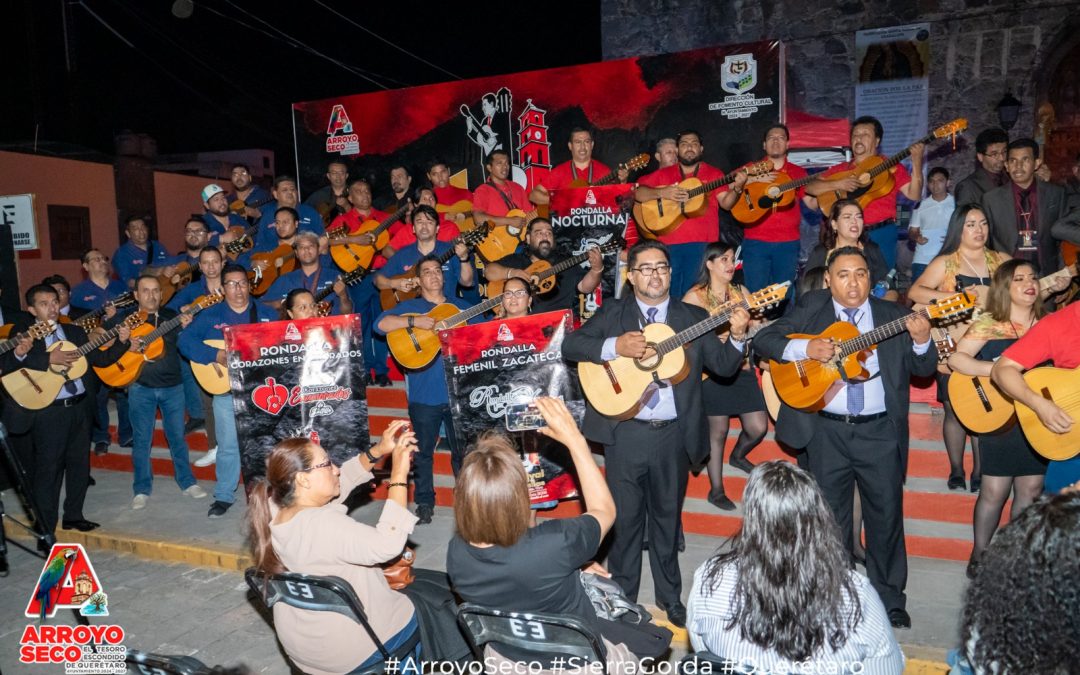 Acompañadas por la ciudadanía arroyosequense, la Rondalla Femenil de Zacatecas, la Rondalla Santo Domingo, la Rondalla Corazones Enamorados, la Rondalla Siete Caballeros, la Rondalla Nostalgias, la Rondalla Nocturnal, la Rondalla Voz del Corazón y la Rondalla Diamante de Amor recorrieron con su música las principales calles de la cabecera municipal, deleitando a los presentes con canciones del recuerdo durante el concierto realizado frente al atrio de la iglesia.