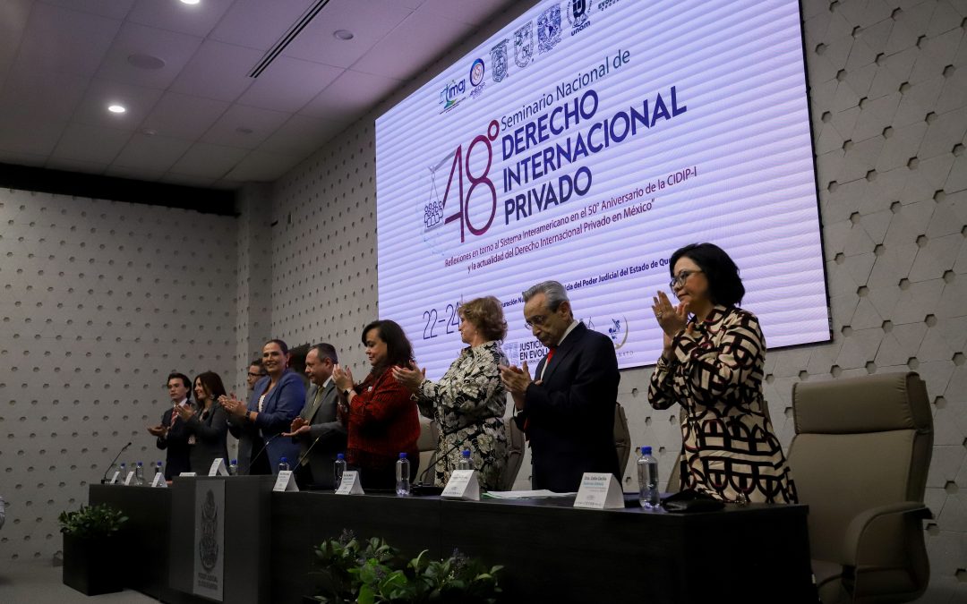 La rectora de la Universidad Autónoma de Querétaro (UAQ) Dra. Silvia Amaya Llano, fue parte de la inauguración del 48° Seminario Nacional de Derecho Internacional Privado y Comparado, en las instalaciones del Tribunal Superior de Justicia; encuentro académico realizado en colaboración entre la Máxima Casa de Estudios de la entidad y la Academia Mexicana de Derecho Internacional Privado y Comparado (AMEDIP). La jornada concluirá este 24 de octubre.