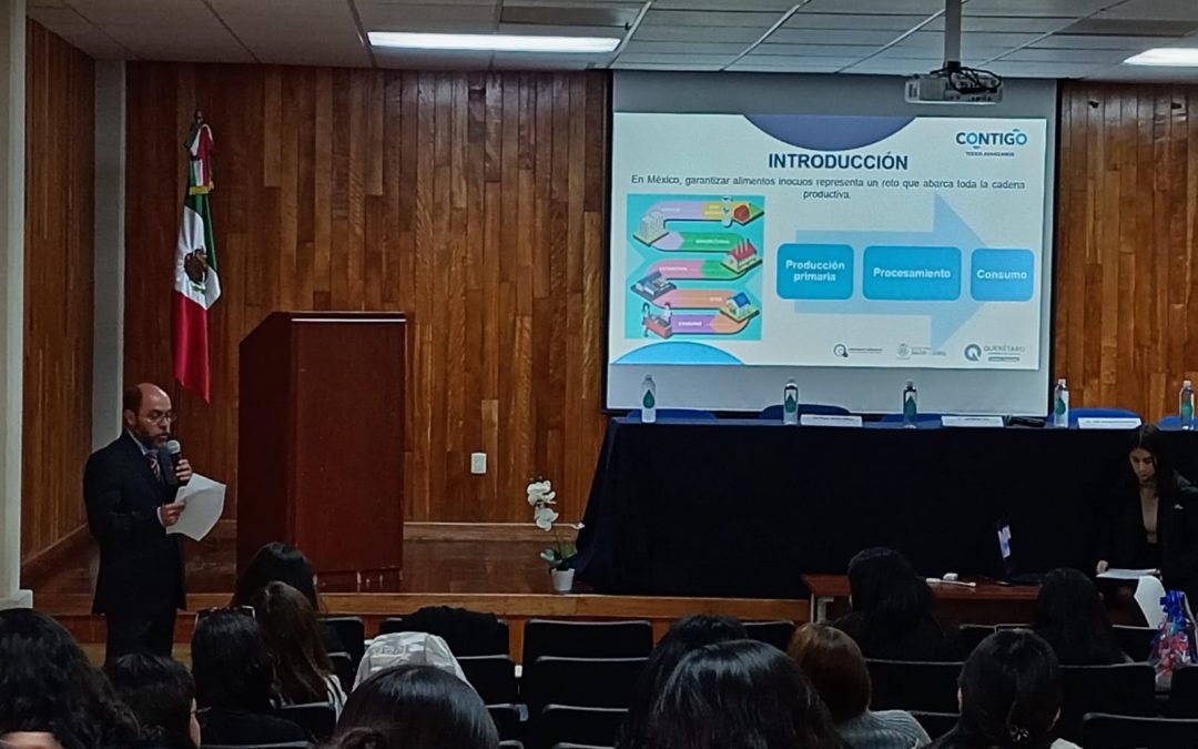 El director de Protección Contra Riesgos Sanitarios (PCRS) de la Secretaría de Salud (SESA) del Estado de Querétaro, José Samuel García Sánchez, impartió la ponencia titulada “Salud Pública y Alimentos: Acciones Estratégicas de la DPRS, en el Foro de Inocuidad y Seguridad Alimentaria organizado por la Universidad Autónoma de Querétaro (UAQ).