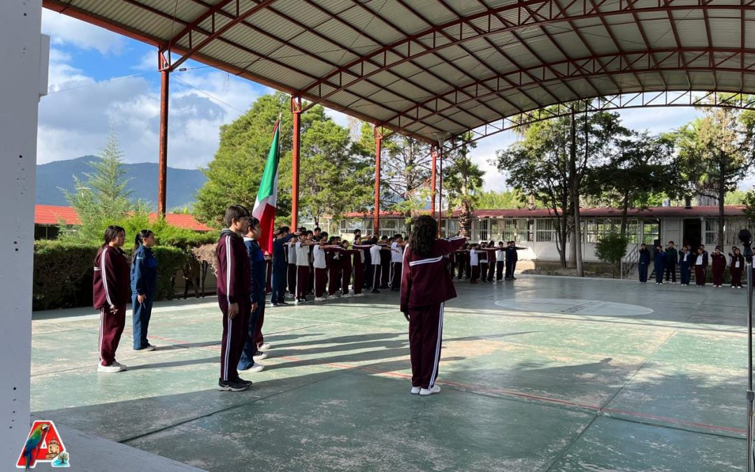 De manera simultánea, la Escuela Secundaria Técnica No. 15 “Justo Sierra Méndez” realizó los honores a la bandera, sumándose a esta conmemoración que recuerda la historia, el legado y los valores que dieron origen al municipio, oficialmente instituido en 1933 durante el gobierno del C. Saturnino Osornio.