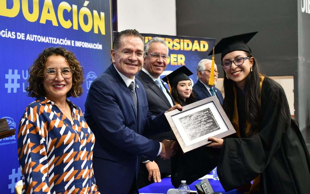 El rector de la Universidad Tecnológica de Querétaro (UTEQ), Luis Fernando Pantoja Amaro, encabezó la ceremonia de graduación de más de dos mil 340 estudiantes de las divisiones académicas. Destacó que los egresados están preparados para enfrentar los retos de un mundo en constante cambio, por lo que agradeció a docentes y familiares su respaldo en el logro de esta meta.