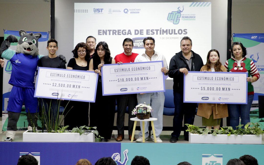 Durante el evento, las y los estudiantes de la Universidad que participaron en el programa recibieron incentivos económicos por su dedicación y avances en el desarrollo de sus proyectos, resultado del trabajo realizado a lo largo de la capacitación que fortaleció sus habilidades emprendedoras y les permitió consolidar sus propuestas de negocio. Además, el equipo ganador representará a la UTC en la Noche de Inversionistas, un encuentro de emprendimiento impulsado por la Secretaría de Desarrollo Económico del Municipio de Corregidora, a través del Centro de Emprendimiento.
