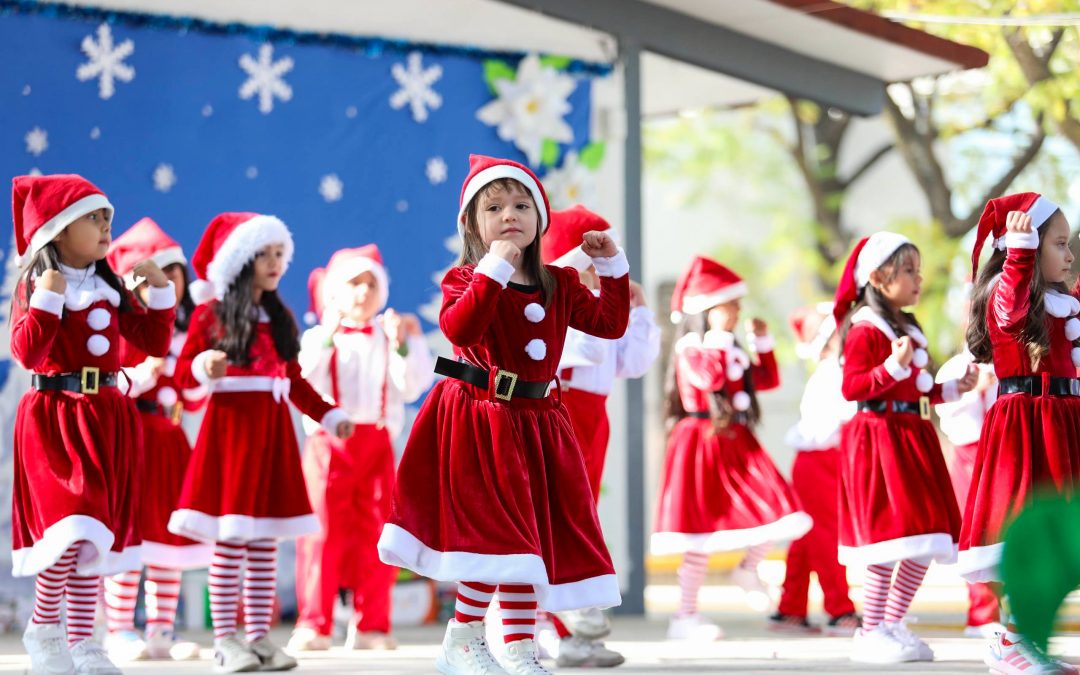 Cabe mencionar que las y los niños se vistieron con atuendos alusivos a la Navidad para presentar su espectáculo musical, donde bailaron y cantaron melodías como Jingle Bells, Sleigh Ride, Deck the Halls, All I Want, y Santa´s Coming to Town y Underneath the Tree, entre otros.