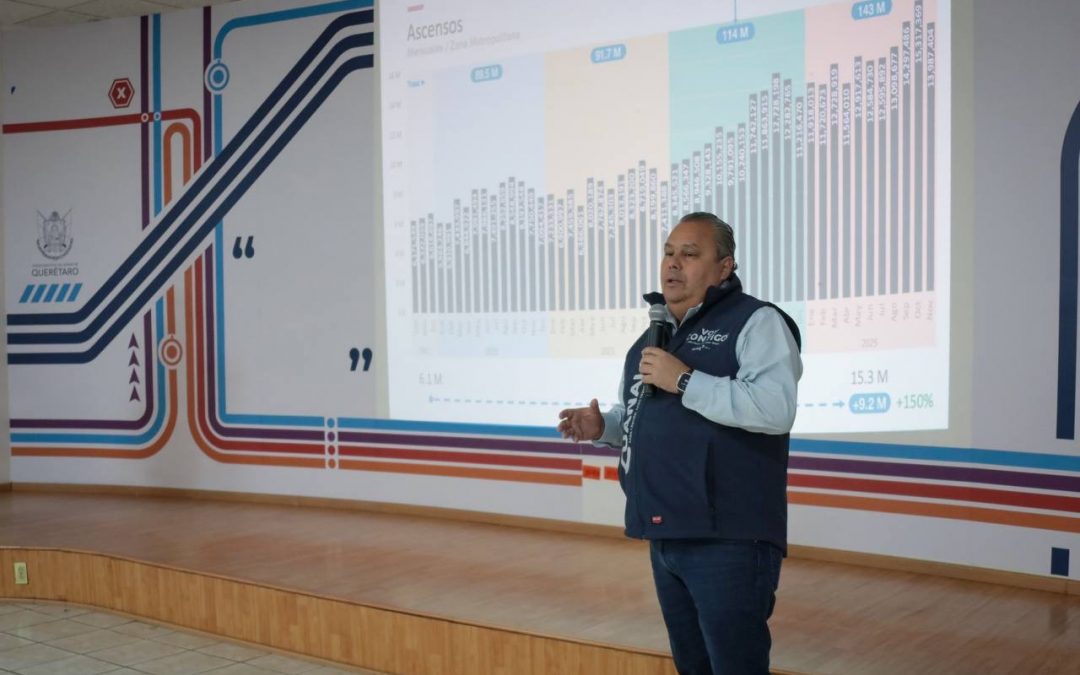 El director de la Agencia de Movilidad del Estado de Querétaro (AMEQ), Gerardo Cuanalo Santos, presentó el reporte anual 2025-2026 de las actividades realizadas por la dependencia, resaltando la evolución del sistema Qrobus en 15 de los 18 municipios del estado, así como un crecimiento sostenido en el número de ascensos mensuales en la Zona Metropolitana.