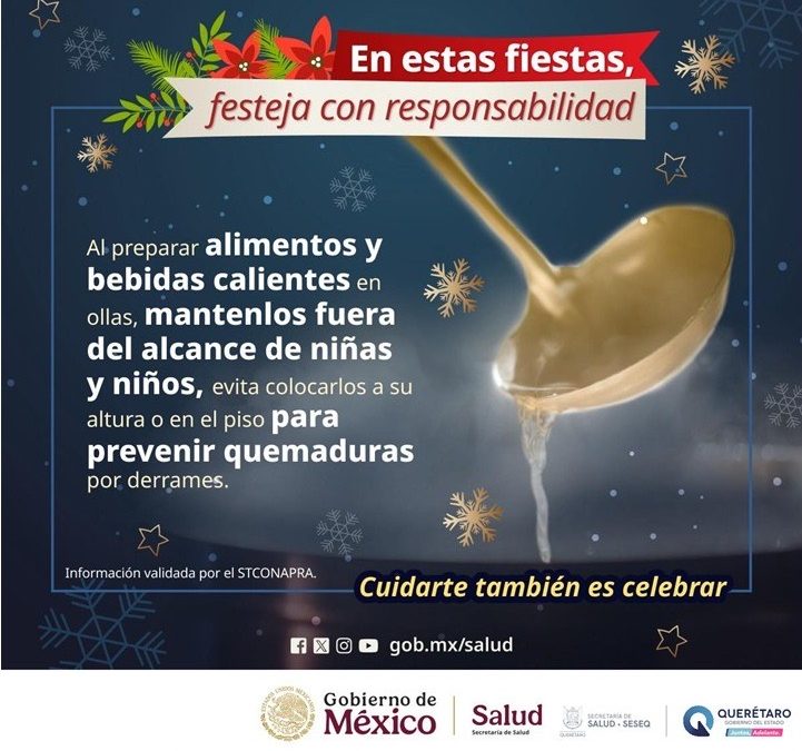 - Durante la temporada invernal y las fiestas decembrinas, es fundamental reforzar las medidas de prevención en el hogar para evitar quemaduras, especialmente en niñas y niños.
