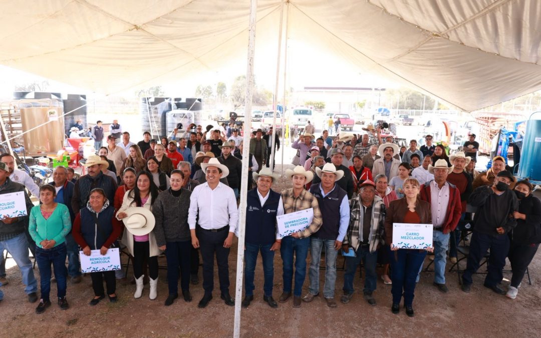 En el marco del Programa Contigo en Concurrencia para la Productividad Rural, se realizó la entrega de implementos agrícolas y forrajeros, tractores, herramientas, sementales, vientres y semilla de cultivos básicos en beneficio de 53 productores de este municipio. A su vez, el representante de los productores, Oscar Rivera, destacó la importancia de iniciar el año con apoyos y agradeció la oportunidad de hacer crecer la productividad en la región.