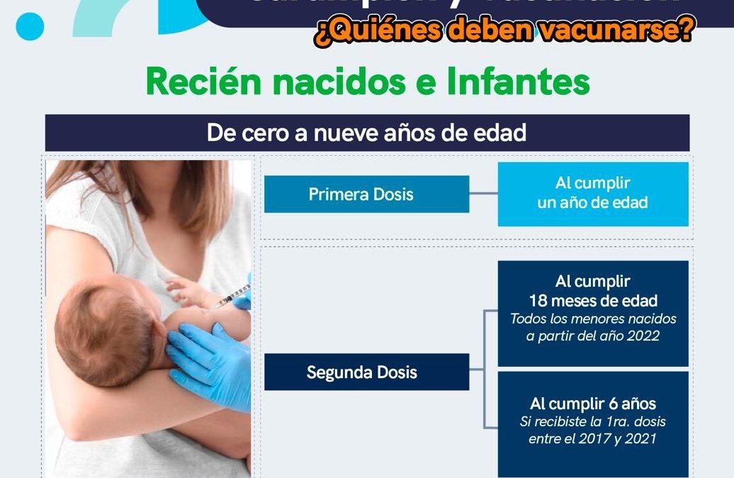 · Doce y 18 meses de edad: el esquema de vacunación es de la primera dosis al año y la segunda dosis a los 18 meses.