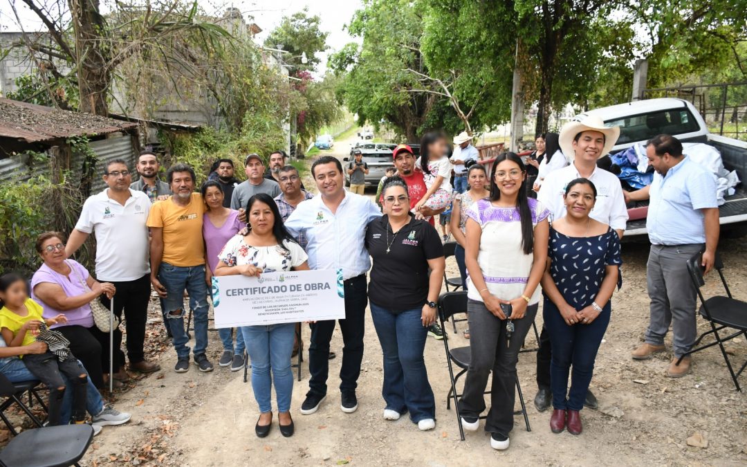 Posteriormente, en la Sección No. 2, autoridades municipales se reunieron con habitantes para hacer entrega de tres obras más. La primera corresponde a la ampliación de la red de energía eléctrica en la localidad de Saldiveña, con una inversión de 836 mil 605 pesos, recursos provenientes del Fondo de Aportaciones para la Infraestructura Social Municipal (FAISMUN) 2025.